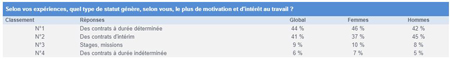 Pour les Français, les contrats courts sont plus motivants : CDD à 44 % et intérim à 41 %.