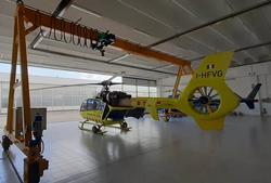 Étant donné que l’entrée du plus petit hangar dédié à la maintenance des hélicoptères ne mesure que de 40 cm de plus en largeur que le diamètre des pales et que la hauteur du portail est à peine supérieure à la hauteur maximale de l’hélicoptère, la précision et la fiabilité absolues de la manutention de la grue et du système de levage étaient des prérequis pour la réussite du projet.
