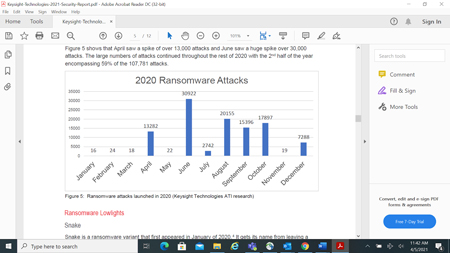 Les attaques par hameçonnage ont augmenté de 62 %. Les recherches de Keysight montrent qu’il y a eu une augmentation de 62 % des attaques de phishing en 2020 par rapport à 2019. En fait, il y a eu une augmentation rapide de ces attaques lorsque la pandémie a occupé le devant de la scène en mars et avril, car les attaques d’ingénierie sociale étaient liées à la pandémie.