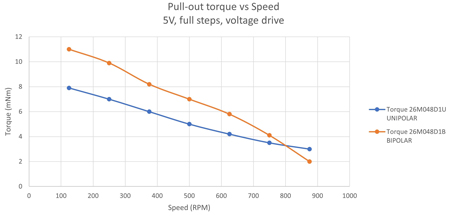 Avec un moteur bipolaire, l’électronique moderne facilite la mise en œuvre d’un driver de courant PWM, offrant ainsi la possibilité d’entraîner le moteur par micro-pas. Le contrôle d’un moteur unipolaire en mode courant nécessite une électronique beaucoup plus complexe et réduit les performances du moteur.