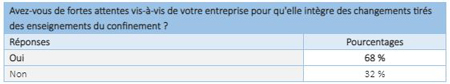 Plus de 68 % des salariés ont de fortes attentes vis-à-vis de leur entreprise pour qu’elle intègre de véritables changements tirés des enseignements du confinement et de la crise sanitaire.