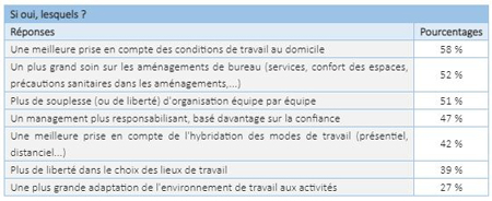 Parmi ces attentes, une meilleure prise en compte des conditions de travail en home office arrive en tête pour plus de 58 % des personnes interrogées.