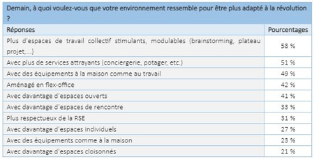 Pour leurs lieux de travail, ils les imaginent mieux équipés, plus collaboratifs, plus serviciels et avec une meilleure prise en compte du travail à domicile », a commenté Dorra GHRAB, Directrice Business & Développement chez Génie des Lieux.