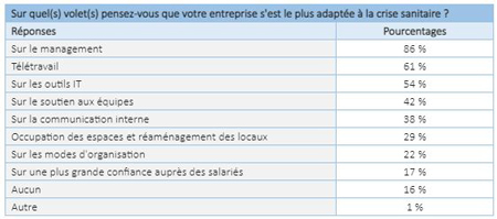 La crise sanitaire aura bouleversé la plupart des entreprises dans le monde. Néanmoins, 86 % des Français estiment que leur entreprise a parfaitement bien adapté son management durant cette période délicate, notamment pour maintenir la productivité.