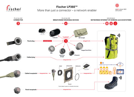 Jérôme Dabonneville, CTO du Groupe Fischer Connectors, explique : “Au départ, le Fischer LP360TM a été conçu dans l’idée de faciliter l’utilisation en unifiant la forme et la fonction. Transcendant notre héritage, c’est au final une véritable plateforme de connectivité que nos équipes ont développée. Les connecteurs Fischer LP360TM sont en effet plus que de simples connecteurs : ce sont des dispositifs intelligents qui contribuent au développement de l’Internet des objets, des écosystèmes intelligents, ainsi que des technologie portables, facilitant leur mise en réseau et leur numérisation. Nous sommes très fiers de recevoir ces deux prix Red Dot. Ils témoignent de la capacité du Groupe Fischer Connectors à proposer une solution de connectivité qui va au-delà d’un simple connecteur.”