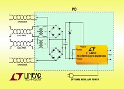 Les LTC4269 et LTC4278 sont conçus pour un nouveau mode d’alimentation de composants utilisant le nouveau standard PoE+, incluant les stations de télé-vidéo conférences, les lecteurs RFID, les caméras de sécurité à contrôle panoramique, vertical, horizontal, à zoom (pan-tilt-zoom) et une large gamme de points d’accès sans fil. Les LTC4269 et LTC4278 distinguent les PSE des PD, soit de type 1 répondant aux niveaux de tension du matériel à la norme IEEE 802.3af ou de type 2 répondant aux niveaux de tension du matériel à la norme IEEE 802.3at, la puissance est allouée en fonction de la classification du matériel. La classification du matériel de type 2 permet à un PSE de ce type de reconnaître la connexion à un PD de type 2 et signale au PD qu’il peut générer les niveaux de tension les plus élevés en rapport avec ceux de la norme 802.3at. Ce nouveau mécanisme de classification assure l’interopérabilité entre les composants de type1 et de type 2.