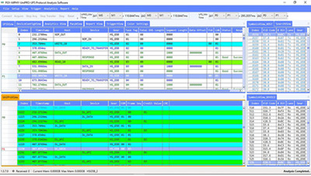 La capture approfondie, les puissantes capacités de déclenchement et les vues d’analyse en profondeur donnent un aperçu sans précédent des couches de protocole Universal Flash Storage 4.0, UniPro® et M-PHYSM. La vue multicouche dans PGY-UFS4.0-PA offre une vue complète de l’activité des protocoles M-PHYSM, UniPro® et UFS dans une seule interface graphique. L’utilisateur peut facilement corréler les activités de protocole entre les couches pour un débogage rapide. Et ainsi aidera à trouver la cause des erreurs de protocole. L’utilisateur peut définir différentes conditions de déclenchement pour capturer une activité de protocole spécifique et décoder la communication entre l’hôte UFS4.0 et le dispositif. Les données décodées sont affichées sous forme de symboles, de paquets de couches UniPro et UFS. Le rapport d’erreurs fournit le résumé des différents types d’erreurs de protocole au sein de millions de paquets de protocole.