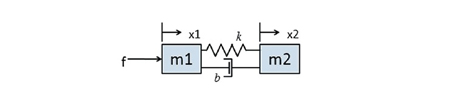Considérez un axe linéaire avec une charge qui doit être positionnée avec précision. La tâche consiste à contrôler la position de la seconde masse en fonction de la force appliquée à la première. La position de la masse 2 dépendra des effets du ressort, de l’amortisseur, du rapport relatif des masses et de toute perturbation du système, telle que le frottement, généré par les coussinets ou autres roulements, ou les erreurs dues au capteur mesurant la position de la masse 1. Il n’est pas toujours possible ni économiquement envisageable de mesurer la position de la masse 2.