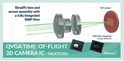 Melexis a développé une nouvelle version de sa caméra 3D « temps-de-vol » (ToF) MLX75026 avec un filtre passe-bande IR (IRBP) tout intégré. Grâce au filtre IRBP intégré, il n’est plus nécessaire de recourir à un filtre IR séparé dans l’assemblage de l’objectif ou du capteur. Cette solution est unique sur le marché. Cela réduit la complexité et les coûts de conception, tout en offrant plus d’options aux concepteurs pour le choix de l’objectif.