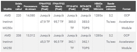 Les AMD Instinct MI250X et AMD Instinct MI250 sont disponibles au format open-hardware OAM (OCP Accelerator Module). L’AMD Instinct MI210 sera disponible sous forme de carte PCIe® dans les serveurs OEM.