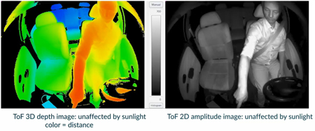 Il y a plusieurs domaines dans lesquels les systèmes ToF VCSEL peuvent servir à surveiller le conducteur d’une automobile, afin de contribuer à un niveau accru de confort et de sécurité. D’une part, ces systèmes peuvent être utilisés pour surveiller le niveau de distraction du conducteur et détecter la somnolence. D’autre part, le même capteur peut aussi être utilisé simultanément pour surveiller le poste de conduite, et mesurer la position de la tête et du corps pour la commande des airbags. Le même capteur peut aussi servir à d’autres fonctions, comme la commande gestuelle. Ainsi, alors que ces systèmes peuvent utiliser une seule ou plusieurs caméras, un seul système de capteurs est nécessaire pour la surveillance simultanée du conducteur et de l’habitacle.