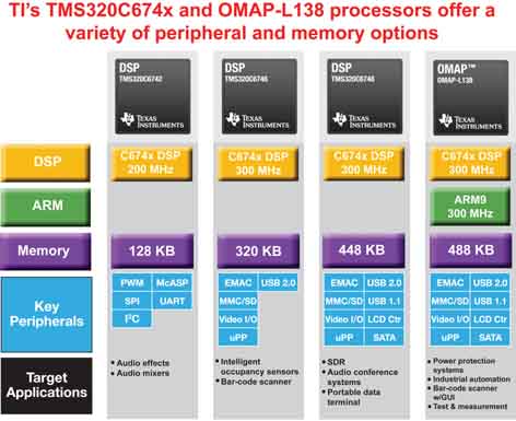 Tous les processeurs sont en phase de pré-commercialisation et sont proposés aux tarifs suivants : TMX320C6742 : 6,70$, TMX320C6746 : 13,50$, TMX320C6748 : 15,20$ et OMAP-L138 : 18,60$ (par lot de 1000 pièces). DSP C5000 affichant la plus basse consommation en mode veille du marché, DSP à virgule flottante bénéficiant également des meilleures performances en la matière, microcontrôleurs ultra-faible consommation, solutions analogiques de gestion d’énergie... TI propose un portefeuille de produits incomparable et offre une technologie haut rendement innovante unique sur le marché.