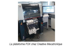 Pour doubler sa capacité de production, CREATIVE MECATRONIQUE a investi dans une "Pick and place", la FOX02 avec une vitesse de placement de 12000cph, un spectre de composants étendu (de 01005 à 33X80mm) et des feeders intelligents pour produire non-stop. Cette plateforme FOX est aussi pré-équipée afin de recevoir un injecteur de type jet ou autre.