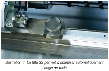 La conception de la tête s’appuie sur une technologie de racle unique, dotée d’une lame flexible d’une épaisseur de 100 microns seulement, avec un revêtement antifriction de 10 microns identique à celui appliqué sur les parois des cylindres des moteurs de motos haute performance de Yamaha, afin de minimiser le gaspillage d’énergie et de prolonger la durée de vie. Ce revêtement prévient l’usure de la racle et du pochoir, d’où une meilleure répétabilité, de meilleurs résultats en cas de sérigraphie avec des pochoirs étagés, mais aussi une réduction du coût total de possession du processus de sérigraphie.