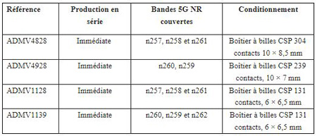 Le chipset frontal 5G à ondes millimétriques d’Analog Devices se compose des circuits suivants :