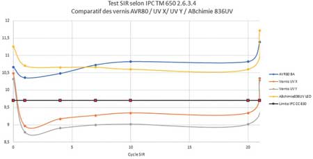 Le vernis ABchimie 836UV LED contient un traceur fluorescent qui permet de s’assurer de la bonne dépose du vernis, l’inspection des circuits en est facilitée. Plus la fluorescence est importante plus l’épaisseur de vernis déposée est importante.