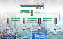 Comme le montre le schéma ci-dessus, les commutateurs de la série IES6300 PoE sont idéaux pour les applications de vidéosurveillance. Le port PoE fournit une puissance maximale de 30 W dans un seul port (240 W pour l’ensemble du commutateur), ce qui peut répondre aux exigences d’alimentation des appareils haute puissance tels que les caméras PTZ. De plus, les commutateurs de la série IES6300 disposent de 8 ports cuivre gigabit, et un seul commutateur peut prendre en charge la transmission du trafic de surveillance en temps réel de 8 caméras HD 4 6 Mbps. Les 4 ports SFP gigabit fournissent une liaison montante à haut débit, un excellent choix pour le cascading entre les commutateurs ou la connexion à un commutateur dorsal. La surveillance de diagnostic numérique (DDM) est prise en charge pour la surveillance des liaisons fibre. Par conséquent, les administrateurs réseau peuvent facilement juger de l’état de fonctionnement des fibres optiques. De plus, les commutateurs de la série IES6300 prennent en charge la technologie d’anneau brevetée 3onedata, l’anneau SW prend en charge l’anneau unique, l’anneau de couplage, la chaîne, le double homing, le temps de récupération automatique en cas de panne de réseau <20 ms, ce qui peut parfaitement répondre aux exigences de mise en réseau complexes et changeantes.