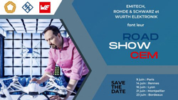 Forts de leurs domaines d’expertises spécifiques, Emitech, Rohde & Schwarz, et Wurth Elektronik France proposent un road show unique. De Paris à Bordeaux, en passant par Rennes, Lyon et Montpellier, les trois acteurs majeurs de l’électronique française vous donnent rendez-vous à la croisée des chemins de la CEM du 9 au 23 juin 2022.
