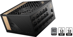 Avec les cartes mères MSI intégrant désormais les dernières technologies tel que le PCIe 5.0, l’alimentation est en passe de devenir l’un des aspects majeurs du PC. Ainsi, les prochaines alimentations MSI MEG Ai1300P / Ai1000P PCIE5 seront cruciales pour de nombreux joueurs. Les MEG Ai1300p / Ai1000P PCIE5 sont les premiers blocs d’alimentation haut de gamme de MSI compatibles avec le PCIe 5.0 et l’ATX 3.0. Ils disposent du nouveau connecteur PCIe 5.0 16 broches qui peut délivrer jusqu’à 600 Watts de puissance. Ainsi, même les cartes graphiques les plus avancées peuvent être alimentées sans soucis. Ces alimentations détectent automatiquement la charge et la température interne du bloc d’alimentation pour ajuster la vitesse de rotation du ventilateur. Quand la charge est inférieure à 55% ou que la température est sous les 70 degrés, le ventilateur va automatiquement s’arrêter pour réduire les nuisances sonores et économiser de l’énergie. La MEG Ai1300P PCIE5 est aussi équipée d’une surveillance en temps réel des informations relatives à l’alimentation, tels que la puissance de sortie au CPU / GPU ou le rendement énergétique actuel.