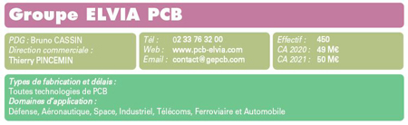 Pratiquement la moitié de ce chiffre d’affaires est réalisé par le groupe ELVIA PCB.