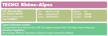 2020-2021 : Impact Covid important avec effet retard (peu d’impact en 2020, plus présent en 2021), fort rebond depuis le dernier trimestre 2021 et début 2022, renforcement sur les technologies flex/flex-rigide et hyper fréquence, application jusqu’à 160Ghz. Maintien du plan d’investissement ambitieux (deux LDI LED dernière génération) pour faire face à la demande délais courts et production série en délais standards.