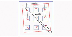 Si nous prenons une puce de 2mm de longueur, dont les bumps font 30μm et que nous devons positionner sur des pads de 45μm, un angle supérieur à 0.43° entrainera des soudures hors pads sur le pad opposé à celui de référence :