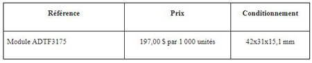 L’ADTF3175 embarque une source de lumière à infrarouge avec fonction optique, diode laser et pilote de diode, ainsi qu’un chemin de réception avec une lentille et un filtre passe-bande optique. Le module comprend également une mémoire flash utilisée pour l’étalonnage et le stockage du micrologiciel, ainsi que des régulateurs de puissance chargés de générer les tensions d’alimentation locales. Il est préprogrammé sur plusieurs modes de fonctionnement optimisés pour les tâches de détection à courte et longue portées.