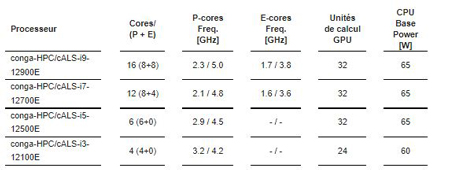 Les modules COM-HPC Client Taille C conga-HPC/cALS équipés des processeurs desktrop Intel Core 12e Gen seront disponibles dans les 4 configurantions suivantes :