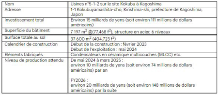 Parallèlement au renforcement de sa présence sur le marché des composants électroniques, Kyocera entend stimuler le développement économique de la préfecture de Kagoshima et créer de nouvelles opportunités d’emploi dans la communauté.