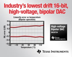 Le convertisseur DAC8734, disponible en boîtier QFN-40 6x6mm ou TQFP-48 7x7mm, offre aux concepteurs d’équipements médicaux et de test automatisés un gain d’espace carte appréciable et une grande souplesse. Capable de fournir ±16 V ou de 0 à +20V sur quatre canaux, il élimine tout recours à un amplificateur opérationnel externe en vue d’accroître le gain en tension. Pour un fonctionnement bipolaire, il suffit aux concepteurs d’inclure une référence de tension, telle que la REF5050. Pour en savoir plus, visitez la page http://www.ti.com/dac8734-prfr.