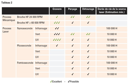 Un autre avantage est l’absence de vibrations et de contraintes de dégagements pour le passage de l’outil. C’est un point qui est important pour le détourage de cartes (com. dépanélisation) ou le travail de matériaux sensibles aux vibrations comme la céramique.