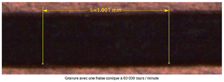 Les épaisseurs de substrat et de cuivre ont une incidence moins importante avec une broche mécanique comparé à un laser. Il convient simplement d’adapter l’outil d’usinage utilisé. Sur les applications d’électronique de puissance, les épaisseurs de cuivres pouvant dépasser les 6000μm, c’est cette méthode qui est privilégiée.