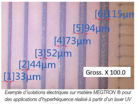 L’usinage laser permettra donc une impédance et une résonnance des circuits produits très constant avec une finesse très élevée, idéale pour les applications d’hyperfréquences.