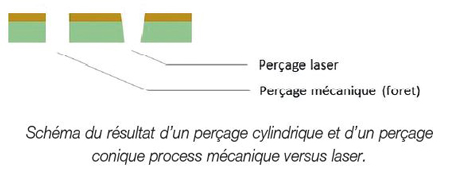 Il est à noter que pour le perçage au laser plus les substrats sont fins, plus il est facile de les percer et moins la déformation conique sera présente.