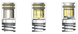 La version avec ressorts hélicoïdaux de la tête du piston permet d’obtenir un contact électrique sûr et constant avec les broches rondes du connecteur.