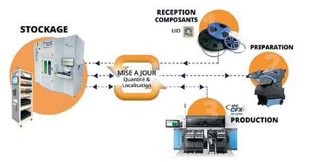 Ce processus permettra d’organiser l’approvisionnement de composants auprès des fournisseurs, gagner du temps lors de la préparation de la production et anticiper les ruptures de composants sur la ligne.