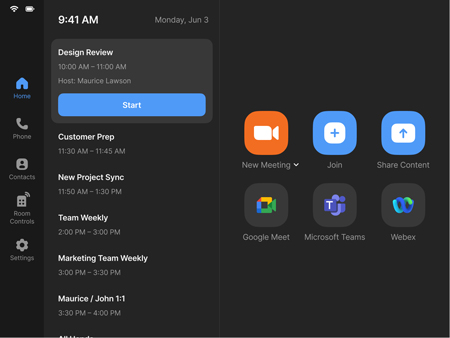 La version 5.13 de Zoom Rooms avait introduit la possibilité de participer à une réunion Microsoft Teams en saisissant les renseignements de la réunion directement dans le Controller ou le Touch Device de la salle. Il existe également une option permettant d’afficher des raccourcis dédiés vers les principales plateformes de réunion directement sur l’écran d’accueil du Controller, y compris Google Meet, Microsoft Teams et les solutions de réunion Cisco.