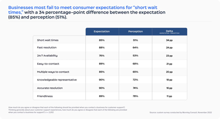 De temps d’attente trop longs : 85 % des consommateurs s’attendent à des temps d’attente courts dans le cadre d’une expérience d’assistance, mais ils sont beaucoup moins nombreux (51 % seulement) à en faire l’expérience.