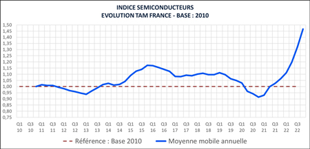 Ces résultats montrent un marché français des semiconducteurs en forte dynamique, adossé à une filière électronique robuste, et jusque-là épargné par le retournement conjoncturel du marché mondial survenu au cours du second semestre. Les segments qui structurent le marché français lui confèrent une relative protection vis-à-vis des aléas conjoncturels et de la volatilité caractéristiques du marché mondial des semiconducteurs et lui assurent de solides perspectives de croissance à moyen terme. C’est de bon augure dans un contexte de priorité affirmée de relocalisation industrielle marqué par un engagement financier sans précédent des pouvoirs publics au niveau national et européen en faveur de la microélectronique, plus que jamais identifiée comme une industrie de souveraineté.