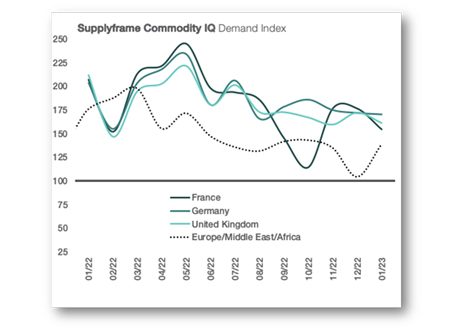 Les prévisions du Commodity IQ concernant la demande globale en composants électroniques indiquent un premier semestre 2023 plus lent que celui de 2022, avec une croissance de seulement 1% au premier trimestre par rapport au quatrième trimestre 2022. Par ailleurs, et en raison du dynamisme des commandes de composants automobiles et industriels, et de la résilience des perspectives macroéconomiques, Supplyframe prévoit une reprise globale de la demande à partir du second semestre de l’année.