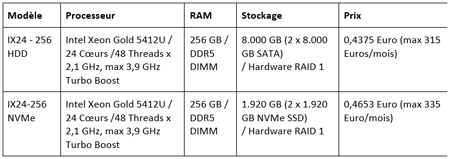 Au lancement, plusieurs options de stockage HDD et SDD/NVMe sont proposées aux clients IONOS :