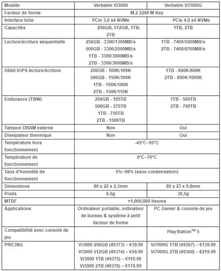Chris Chalder, responsable du développement commercial chez Verbatim, déclare à propos de ce lancement : "Le SSD Vi3000 est une excellente solution de stockage pour ceux qui cherchent à améliorer les performances et la fiabilité de leur système, et sa compatibilité avec les systèmes de petite taille en fait une option très polyvalente pour un large éventail d’utilisateurs."