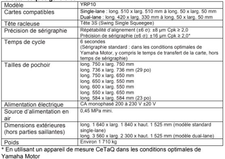 L’YRP10 assure une sérigraphie à la fois rapide, avec un temps de cycle de base de 6 secondes, et fiable, avec une précision de ±6 σ : ±16 μm Cpk ≥ 2,0 (en utilisant un appareil de mesure CeTaQ dans les conditions optimales de l’entreprise).