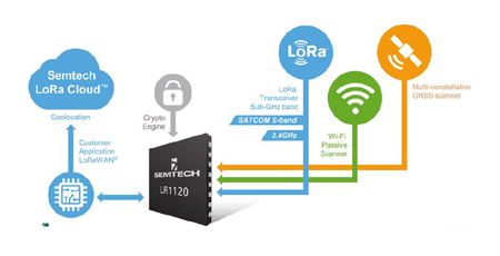 L’émetteur-récepteur LR1120 de la plateforme LoRa Edge exploite à la fois les signaux des satellites GNSS, et les adresses MAC des réseaux Wi-Fi pour fournir des informations de géolocalisation ultra-précises. Il permet aussi de communiquer en 2,4 GHz en utilisant la technologie LoRa, et de prendre en charge la bande S pour la connectivité par satellite.