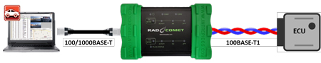 Enfin, la quatrième permet la capture de communications 10BASE-T1S avec une datation des trames avec une résolution de 10nS. Dans ce cas, le RAD-Comet est connecté à un PC utilisant le programme VehicleSPY. Il peut aussi compléter un datalogger comme le NeoVI FIRE3, le RAD-Gigastar ou le RAD- Galaxy qui ne possèdent pas ce type d’interface.