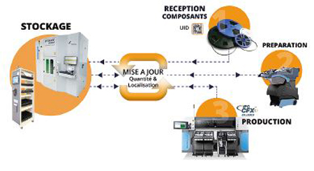 Afin d’optimiser la production sur la ligne CMS, il est indispensable de connaître l’emplacement exact des composants nécessaires ainsi que leur quantité restante...
