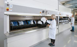Le principe du stockage vertical permet de gagner jusqu’à 60 % d’espace grâce à la compacité permise par la machine, et par l’exploitation au maximum de la hauteur sous plafond avec une emprise au sol minimale.