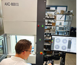 L’AXC-800III est la troisième génération de compteur de composants à rayons X de Scienscope. Il capture les images des composants à l’intérieur des bobines et utilise l’IA pour compter les quantités. L’AXC-800III peut compter jusqu’à 01005 avec une précision de 99,9 % en moins de deux secondes par bobine. Le lecteur de codebarres optique breveté Scienscope déchiffre les codesbarres simultanément. Les résultats peuvent être téléchargés sur le système MES en temps réel et une nouvelle étiquette sera générée automatiquement pendant que les bobines sont retirées de la machine.