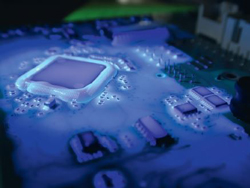 Sur PCBa, un collage n’est pas toujours nécessaire et la protection par bonding est très efficace et déconcertante d’efficacité et de facilité de process pour protéger les composants sensibles des milieux humides. Ces résines polymérisant avec les UV, permettent la mixité entre elles-mêmes et un vernis de tropicalisation, tout en gardant une rapidité de process sans équivalent puisque la polymérisation se fait en simultané et en quelques secondes. C’est magique !