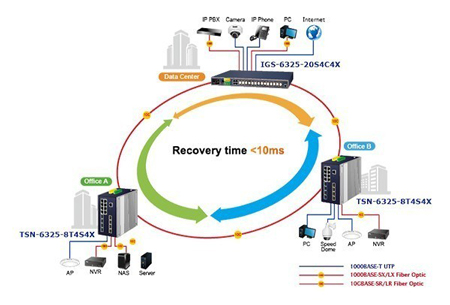 Pour améliorer la technologie Ethernet à fibre optique avec des fonctionnalités hautement flexibles, hautement extensibles et faciles à installer, le TSN-6325-8T4S4X offre une vitesse d’échange de données jusqu’à 116 Gbit/s via l’interface à fibre optique et la distance de transmission peut être étendue jusqu’à 120 km. Le TSN-6325-8T4S4X dispose d’une capacité d’auto-récupération puissante et rapide pour éviter les interruptions et les intrusions externes. Il intègre l’ERPS (Ethernet Ring Protection Switching) ITU-T G.8032 dans le réseau d’automatisation du client pour améliorer la fiabilité et la disponibilité du système. La série IGS-6325 sur rails DIN est la solution idéale pour les centres de données, les fournisseurs de services et les télécommunications afin de créer une connexion redondante et d’établir une bande passante élevée pour une batterie de serveurs Big Data.